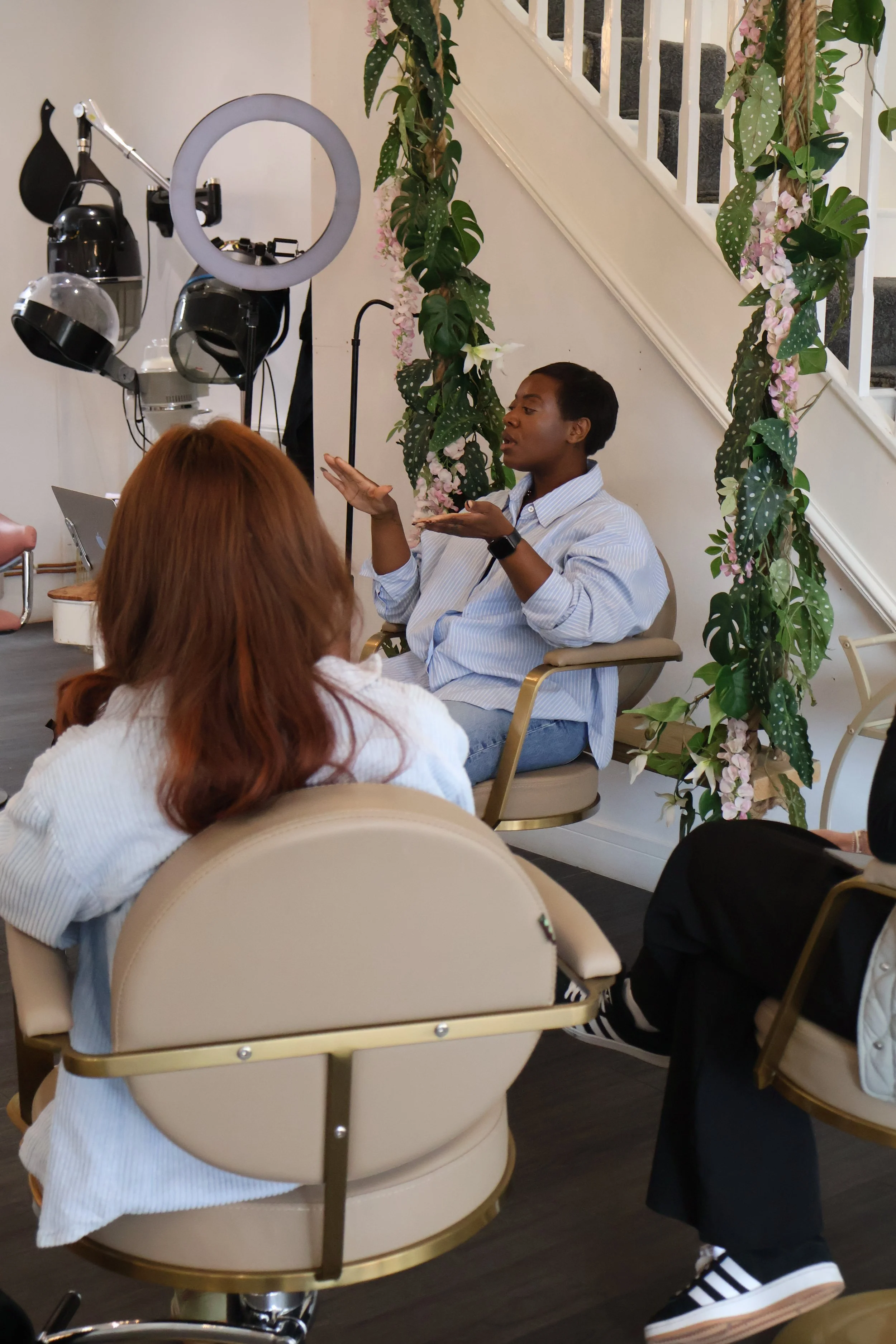 Here you can explore services with Naomi. For clients there’s a range of services available from Texture Release, Sew In’s, Curly Cuts and more. As a contractor you can book education for afro and curly hair or enquire about bespoke courses and masterclasses.